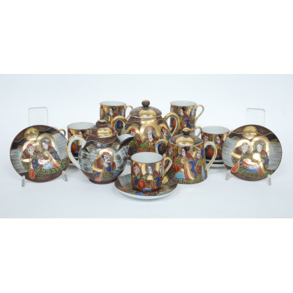 Manifattura orientale. Servizio da caffè in ceramica con decoro "giapponese" composto da una caffettiera, due zuccheriere, otto tazze e nove piattini (lievi difetti)
