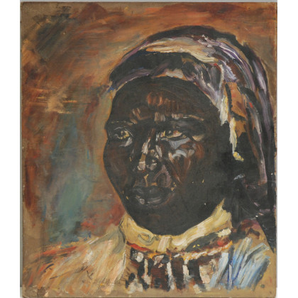 Firma indecifrata "Volto di donna africana" olio su cartone(cm.46X3)Iscritto al retro