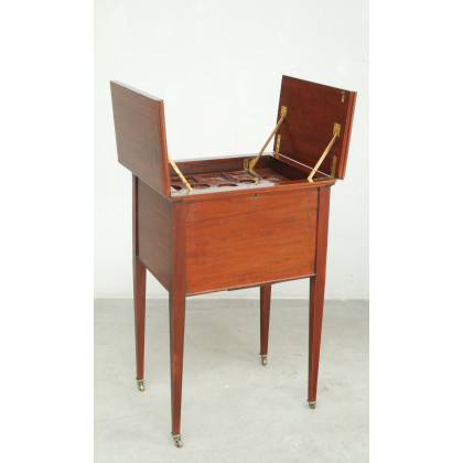 Mobile bar a due ante con meccanismo che solleva piano portabottiglie e bicchieri (cm 52x80x43) Inghilterra, inizio secolo XIX