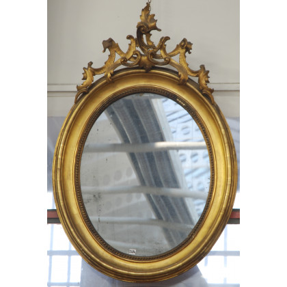 Specchiera in legno dorato decorata con cimasa a motivi vegetali (cm 103x67) (difetti)