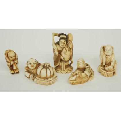 Lotto di cinque netsuke in avorio Giappone, inizio sec. XX