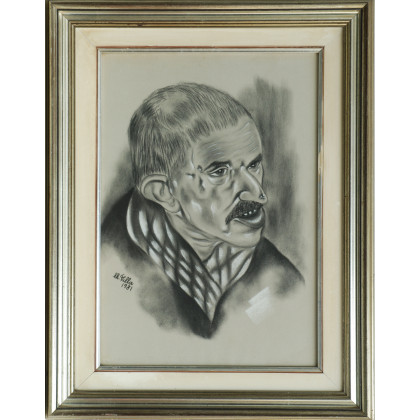 Dipinto a tecnica mista raffigurante figura (cm 50x35) recante firma Villa, in cornice (difetti)