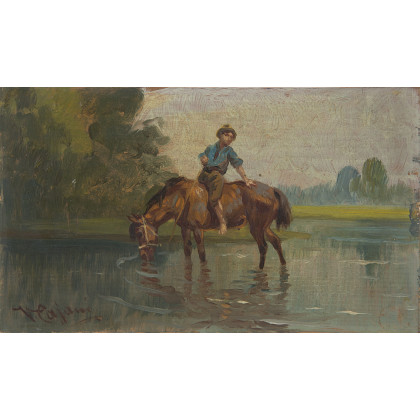 "Impressione", olio su tavola (cm 15x25) Firmato in basso a sinistra Iscritto e firmato al retro
