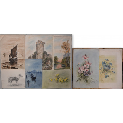 Cartella contenente pastelli, incisioni e foto di diversa epoca
