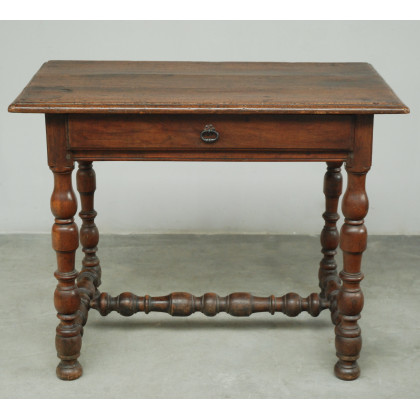Tavolo da parete ad un cassetto nella fascia, gambe e traverse tornite (cm 95x75x56)