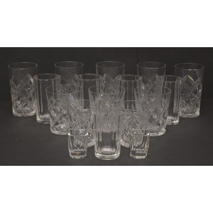 Lotto composto da numerosi bicchieri in vetro e cristallo molato (difetti)