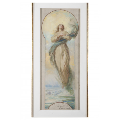 Scuola della prima metà del sec. XX, "Assunzione", olio su tela (cm 52x20,5) con dedica alla base. In cornice (difetti)