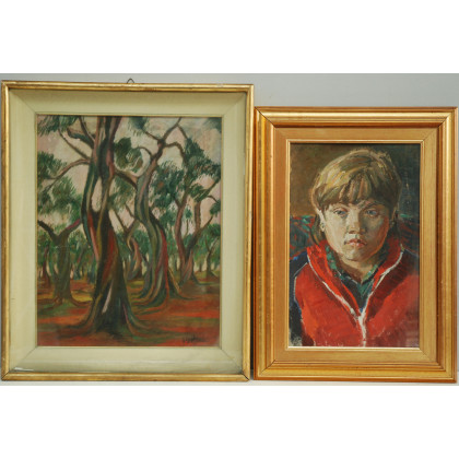 AA. VV. Lotto composto da due dipinti raffiguranti un ritratto e un paesaggio In cornice (difetti)