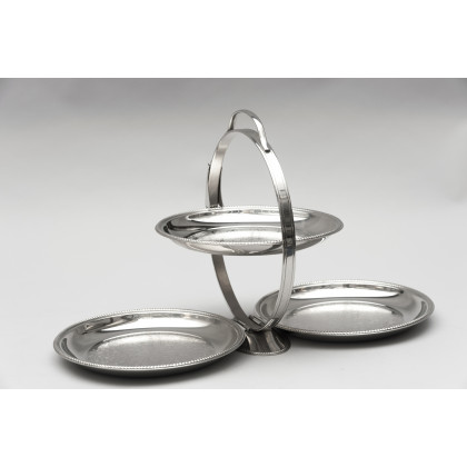 Alessi, Alzata portadolci pieghevole in acciaio, modello "Mercurio". Anni 80 del sec XX (h cm 27)