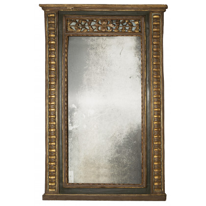 Caminiera in legno scolpito laccato e dorato, la parte superiore con fregio in legno traforato (h cm 105x70)(difetti)