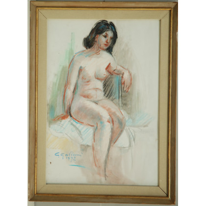 "Nudo di donna seduta", pastelli colorati su cartone pressato (cm 47x32) Firmato e datato: "1972" in basso a sinistra In cornice
