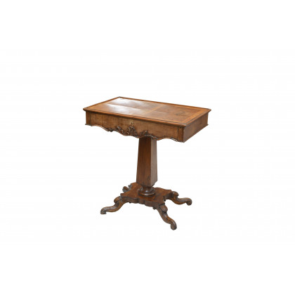 Tavolino con cassetto sottopiano, fusto a colonna e quattro piedi a ricciolo (cm 70x74x44) (difetti)