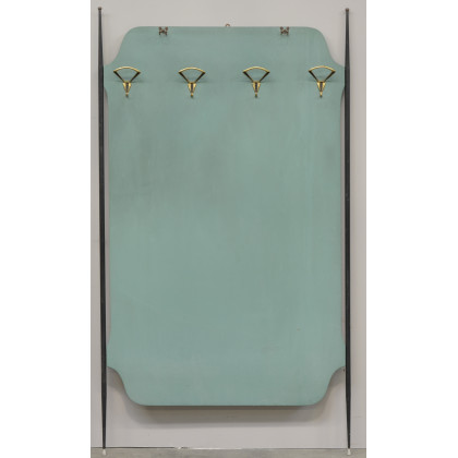 Appendiabiti da parete con montanti in ferro e appendini in metallo dorato (difetti) (cm 189x105)