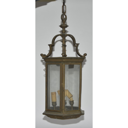 Lanterna esagonale da portico in metallo a tre luci (h cm 54) (difetti)