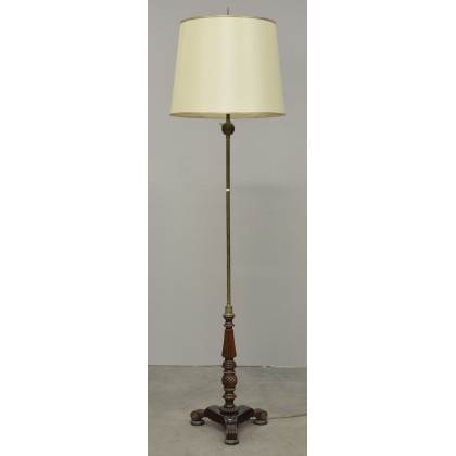 Lampada da terra a tre luci con base tripode in legno e aste in ottone (h cm 180) (lievi difetti)