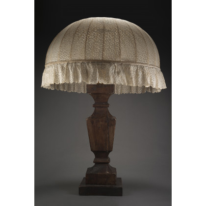 Wooden bedside lamp with lace lamp-shade