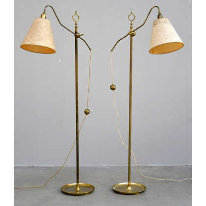 Coppia di lampade da terra orientabili in ottone. Italia anni 50 (h cm 164)