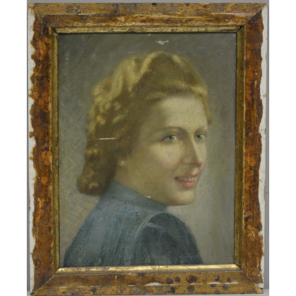 (attribuito)"Ritratto di Signora", olio su compensato (cm 38,5x29) In cornice (difetti)