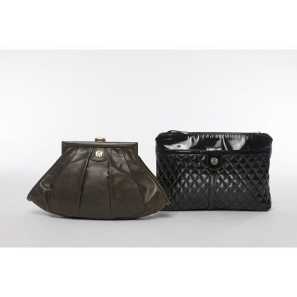 Pirovano: lotto composto da due borse in pelle color verde muschio e vernice color nero con tracolla (lievi difetti) Lot comprising two leather pochette bags (minor defects)