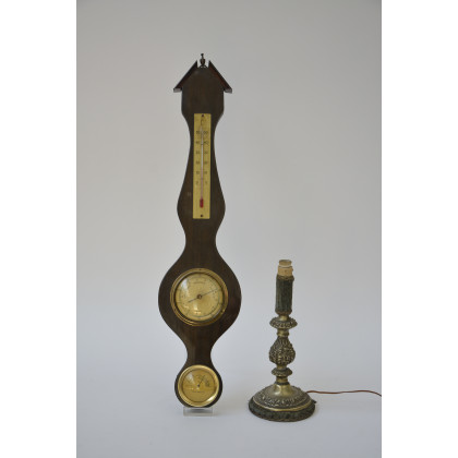 Lotto composto da un candeliere montato a lampada ed un termometro/barometro da muro