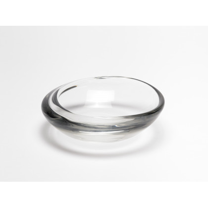 Portaoggetti in vetro massello trasparente. Murano 1970 ca. Firmato a punta sotto la base (d cm 15)