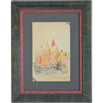 "Senza titolo" 1958, tecnica mista su carta (cm 27,5x17,5) firmato, locato e datato in basso a destra. In cornice