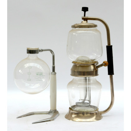 Lotto composto da due macchine da caffè di diversa epoca in metallo cromato, ceramica e vetro (difetti)