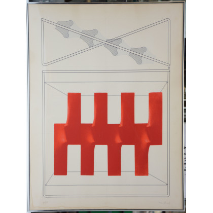 "Composizione", litografia (cm 80x60) firmata e numerata 40/120 in basso a sinistra (difetti)