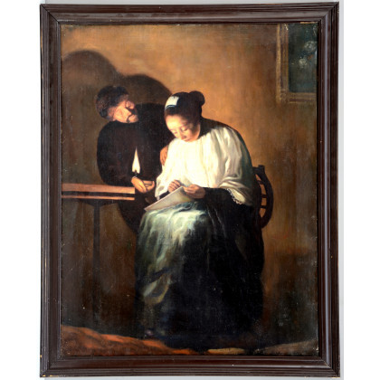 Ignoto "Scena d'interno" olio su tela (cm 92x70) in cornice