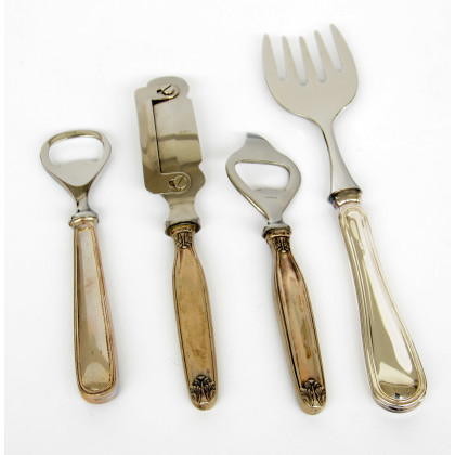 Quattro posate a servire con manici in argento ed estremità in acciaio inox
