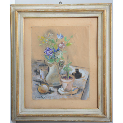 Firma indecifrata "Natura morta con fiori" olio su cartoncino (cm 43x33) In cornice