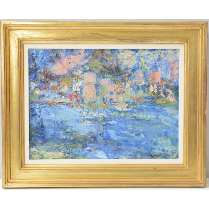 "Paesaggio fluviale" Olio su tela (cm 30x40), firmato in basso a sinistra. In cornice (lievi difetti)