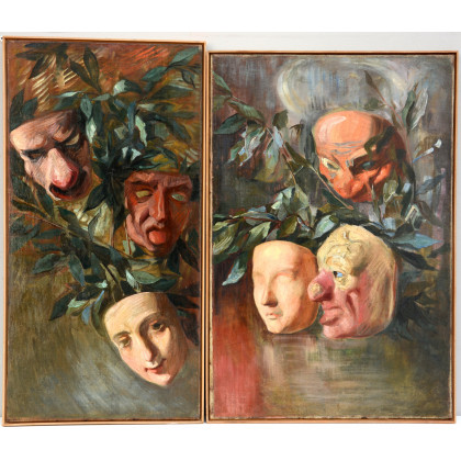 Ignoto "Studi di maschere" due dipinti ad olio su tela (cm 75x50 e 78x40)