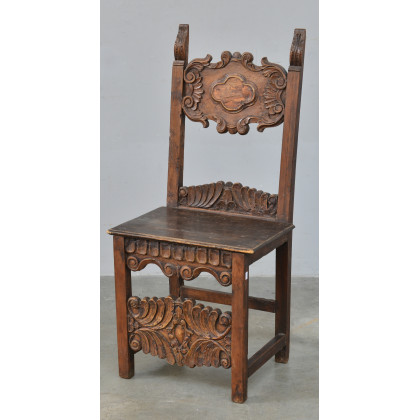 Sedia in noce con fasce anteriori intagliate a volute (difetti e restauri)