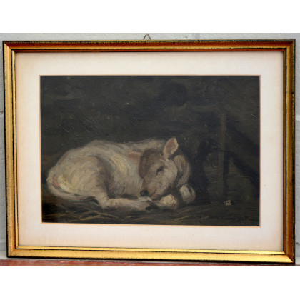 "Vitellino". Olio su cartone (cm 24,5x35) firmato in basso a destra in cornice