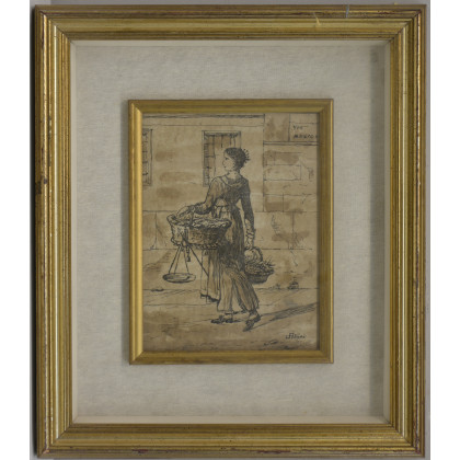 "Contadina" stampa a firma Pollini (cm 24x18). In cornice