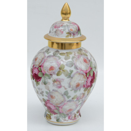 Manifattura di Baviera, potiche con coperchio in ceramica decorata con rose. Anni 50