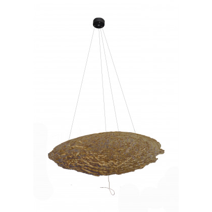 "Light Wave" Scultura luminosa ideata e utilizzata per l'installazione icono-sonora "Alma Mater" di Yuval Avital, Milano 2015. Schermo circolare concavo in resina, con superficie inferiore rivestita in foglia color oro, illuminata mediante led da 1 watt. Esemplare firmato e numerato dall'autore sull'estradosso dello schermo (d cm 80 ca)