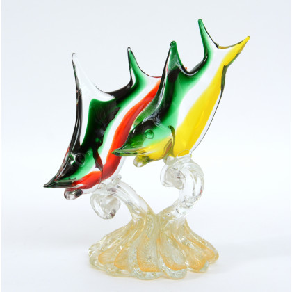 Scultura in vetro di Murano raffigurante due pesci. Anni 70/80