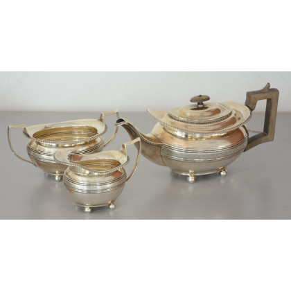 Servizio da the in argento composto da teiera, lattiera e zuccheriera. Londra, 1912. Goldsmith&Silversmith Company (gr 1100 lordi)