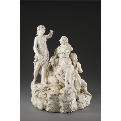 Manifattura di Doccia, inizio del sec. XIX gruppo in maiolica composto da quattro figure mitologiche su base rocciosa. (h cm 38) (difetti) (restauri e mancanze) Doccia figural group, early 19th century (defects, restorations, losses)