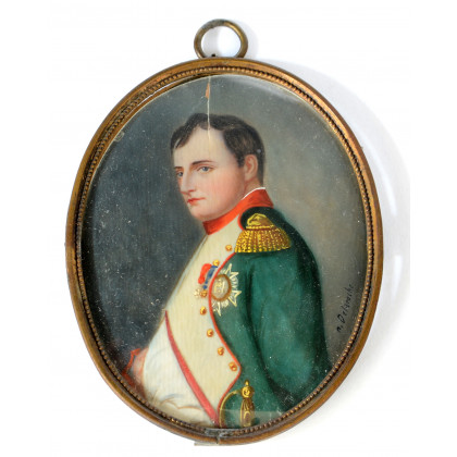 Firma indecifrata "Napoleone" miniatura ovale firmata in basso a destra, in cornice (difetti)