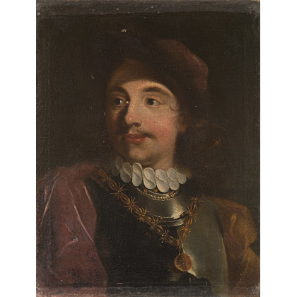 Maestro lombardo della fine del sec.XVIII "Ritratto cavaliere in armatura" olio su tela (cm.53X43). In cornice intagliata e dorata Lombard Master of the late 18th century "Portrait of a Knight in Armour" oil on canvas. Giltwood frame