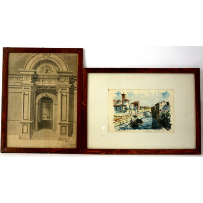 Lotto composto da un'acquaforte e un disegno a soggetti diversi