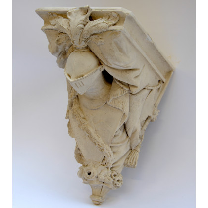 Mensola in gesso decorata in rilievo ad armatura (cm 22x36x28) (difetti)