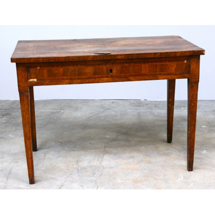 Tavolino rettangolare lastronato e filettato con un cassetto nella fascia. Secolo XIX (cm 96x68x53) (difetti e restauri)