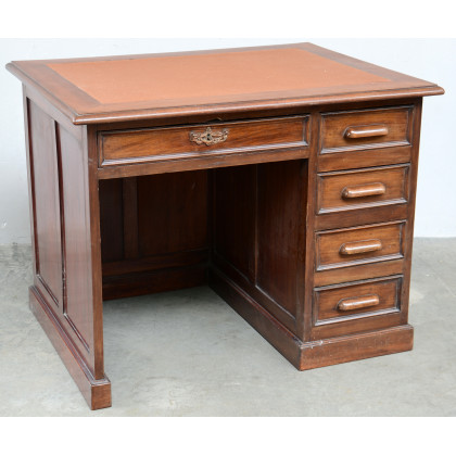 Scrivania da centro ad un cassetto sottopiano e quattro nei montanti. 1940 circa (cm 100x80x80)