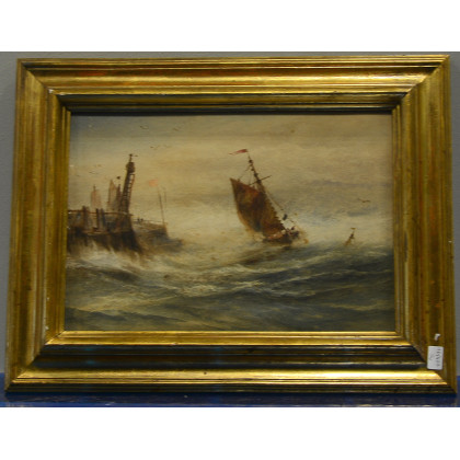 Scuola inglese "Veliero in tempesta" acquerello (cm 22.5x33). In cornice