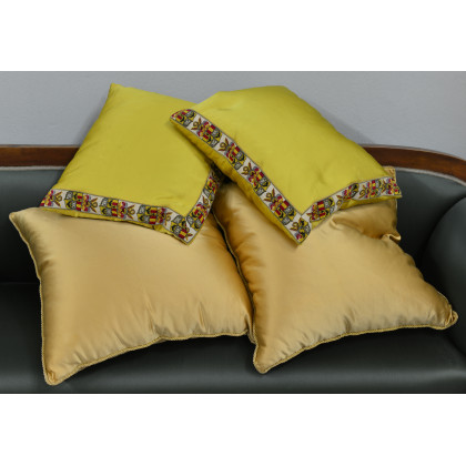 Lotto composto da quattro cuscini in raso di cui due con bordi decorati da stemmi