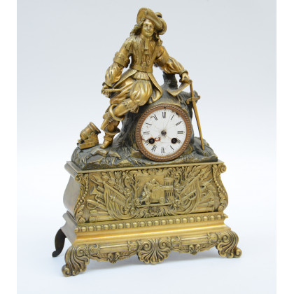 Pendola da tavolo in bronzo con cassa decorata a scene storiche e figure di marinaio a tutto tondo, quadrante in smalti a numeri romani. Francia fine sec. XIX (h. cm 40) (difetti e mancanze)